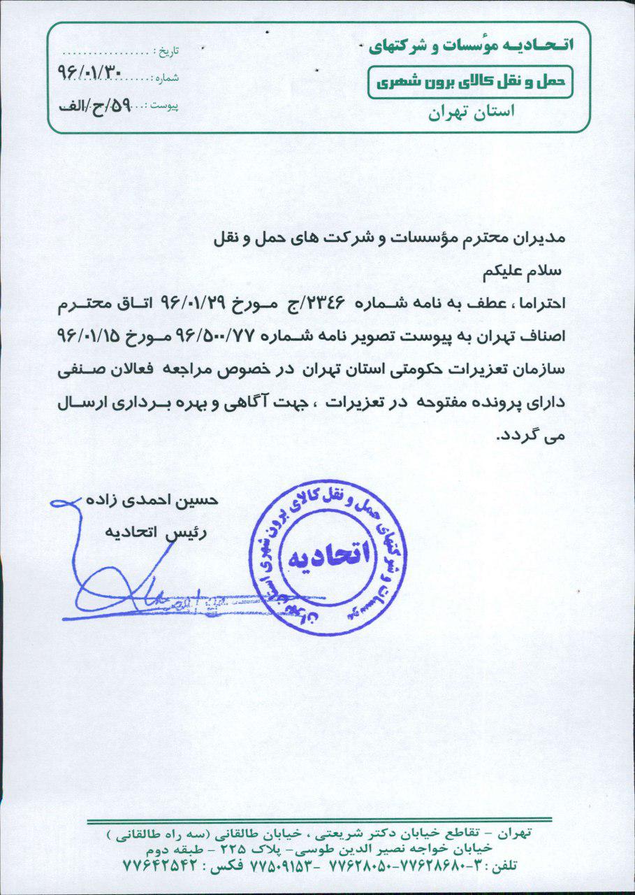 مدیران محترم مؤسسات و شرکت های حمل و نقل