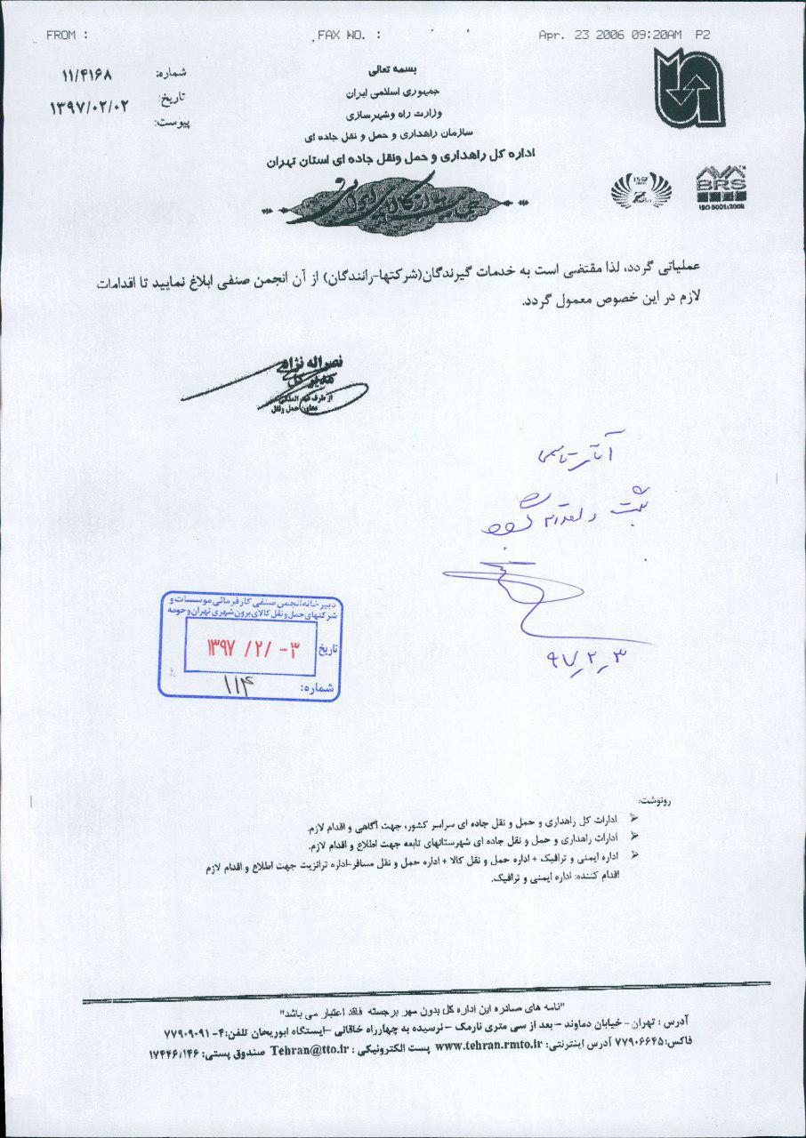 - فوری و مهم: اعلام تعداد کل بارنامههای باطلی و بازگشت نشده از ابتدای سال ۱۳۹۰ تاکنون