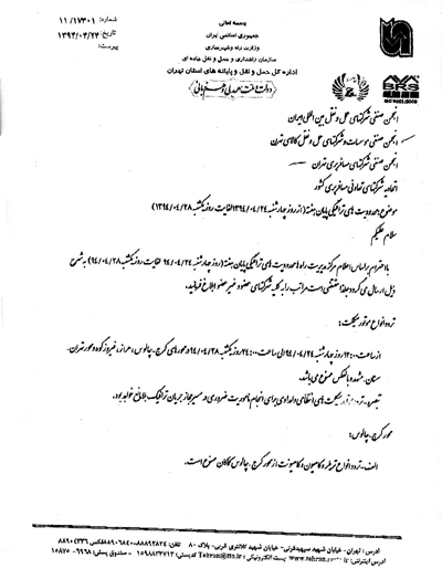 در بخشنامه رئيس هيأت مديره انجمن اعلام شد: الزام استفاده از سايت انجمن تهران جهت اخذ بخشنامهها 23 مرداد 1390
